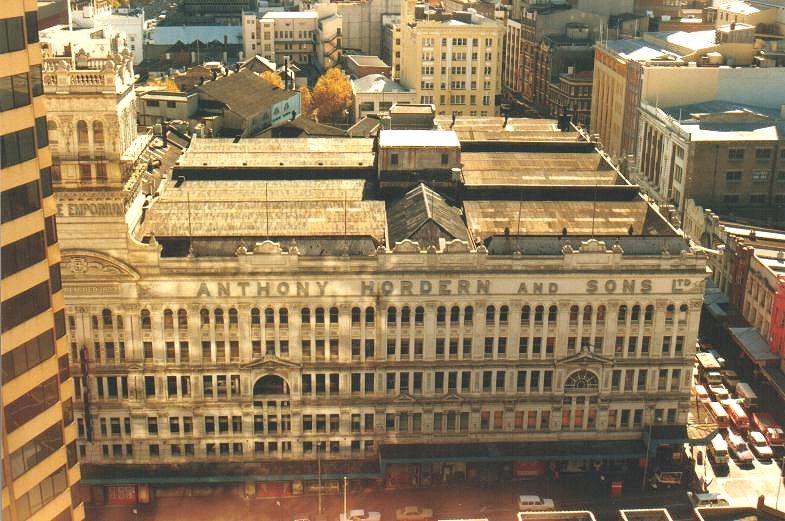 Anthony Hordern & Sons was the largest department store in Sydney. With 52 acres (21 hectares) of retail space, Anthony Hordern's was also once the largest department store in the world. The business was originally established by a free immigrant from England, Anthony Hordern, in 1823, as a drapery shop. He was the founding member of the Hordern family in Australia. A further large menswear store was in upper George Street, and Hordern's also operated one of the largest mail order businesses in Australia. In 1844 Lebbeus Horden set up business as L. & A. Hordern at 689 George Street, Brickfield Hill, the site now occupied by the World Square complex. Anthony jun., his wife, and family lived above the store.