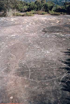 Aboriginal rock carvings near the Engravings Track, Allambie