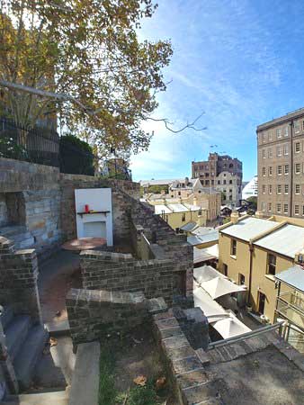 Perched on a steep, rocky hill, it is hard to imagine why anyone would build on such difficult land, but The Rocks was so densely populated during the 19th century that every spare piece of land was sought for housing. The rooms in the eight terrace houses were no larger than 3m x 3m, and demonstrate the cramped living conditions in the 19th century, compared to today.