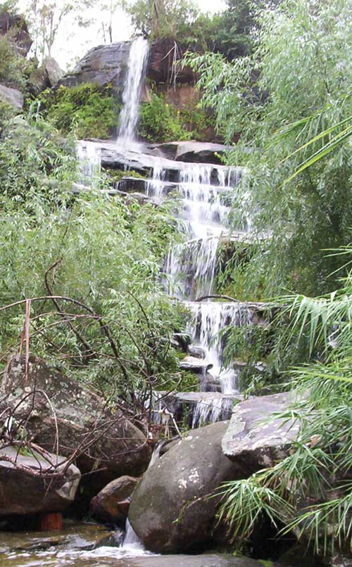 After Oxford Falls, Frenchs Creek Falls in Belrose would have to be the most visually stunning of all waterfalls of the inner Sydney metropolitan area. They consist of a pair of giant steps a hundred or so metres apart over which the creek flows on its way from the top of the escarpment into the valley below. Access to the top of each falls is good, however for the best view (from the rock pools at their base) one has to struggle down a steep, rugged hillside while pushing through dense undergrowth. This can be quite dangerous, especially after rain when the foliage overhead and ground underfoot is damp, slippery and unstable. Unfortunately, this is when the falls are at their most spectacular.