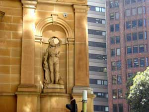 The building's facade features 48 niches, 12 on each side, whose sculpted occupants include explorers and legislators who made a major contribution to the opening up and settlement of the nation. Although 48 men were nominated by architect James Barnet as being suitable subjects, most were rejected as being 'hunters or excursionists'. Only 23 statues were commissioned, the last of them being added in 1901 leaving 25 niches unfilled. Those who made it include Hume and Hovell; Sir Thomas Mitchell; Blue Mountains pioneers Blaxland, Lawson and Wentworth; George Bass; Matthew Flinders and Sir Joseph Banks. The niches on the Bridge Street frontage are all filled but 25 others were never filled. It is not known who if anyone at all was intended to fill these empty spaces, or whether Barnet left them empty on purpose so they could to be filled by future generations with statues of persons they deemed worthy of honouring.The only new statue to be installed since was that of colonial surveyor James Meehan (1774-1826) was created and placed in an empty niche on cnr. Loftus/Bent Streets in 2010. Meehan was transported to NSW due to involvement in the Irish Rebellion of 1798. He arrived in Sydney in 1800 and, as a teacher and skilled surveyor, was assigned as a servant to Acting Surveyor-General, Charles Grimes. Within two years he had been on two major expeditions and, by 1806, had been conditionally pardoned. The early towns of Sydney, Parramatta, Bathurst, Port Macquarie and Hobart were all explored, laid out and measured by Meehan. The statue was commissioned by the Land & Property Management Authority.