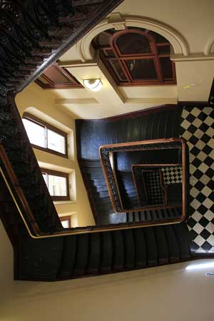 At the time of its completion, it was the largest of public buildings, boasting the latest in office technology at the time - speaking tubes, pneumatic bells as well as the usual late 19th century inclusions such as spiral stairs, and a mosaic of Queen Victoria's coat of arms at the entrance. Very aware of the 1882 Garden Palace fire which destroyed many government records, the architect made sure the plan room had a heavy, fireproof metal door. Beneath the room's domed ceiling, its walls were lined with thousands of cardboard tubes that would have once held plans and records. A Surveyor's Baseline was set into the marble floor of the hallway, where surveyors calibrated their equipment before setting out on a survey.
