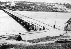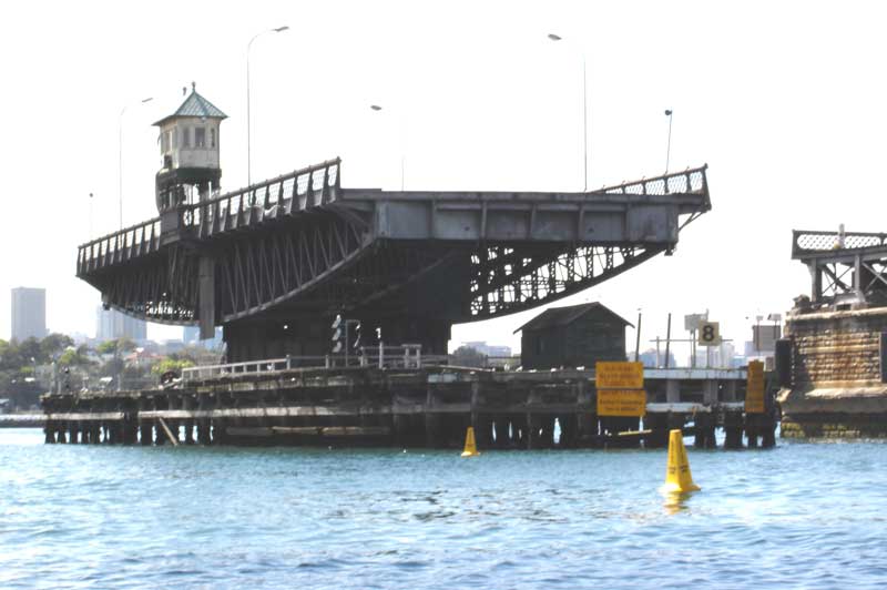 On 28th June 1903 a new bridge to Pyrmont, designed by Percy Allan, Assistant Engineer for Bridges in the NSW Department of Public Works, opened. Like the ground-breaking Pyrmont Bridge being built at the same time, the second Glebe Island Bridge was a swing bridge swivelling on a massive central stone pivot-pier with timber-trussed side spans. The two bridges, both of which were openned using tram motors, are among the few remaining structures standing as monuments to Allan's skill.