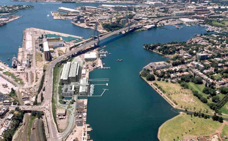 Rozelle and Blackwattle Bays are part of a chain of bays which branch off the head of Sydney Harbour to the west of The Rocks/Millers Point peninsula. The growth of Sydney in the 19th century, combined with the lack of space for the development of shipping facilities on Sydney Cove, forced shipping companies to look east of Sydney Cove and exploit the extensive deep waters of White, Johnstons, Rozelle and Blackwattle Bays and Darling Harbour. Blackwattle Bay and Rozelle Bay continue as two of the few remaining working parts of Sydney Harbour and use of the bays by commercial and recreational operators has formed part of economic development.