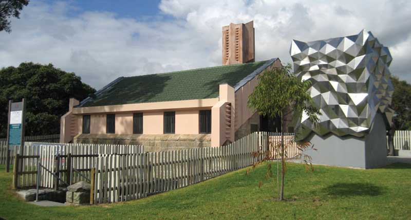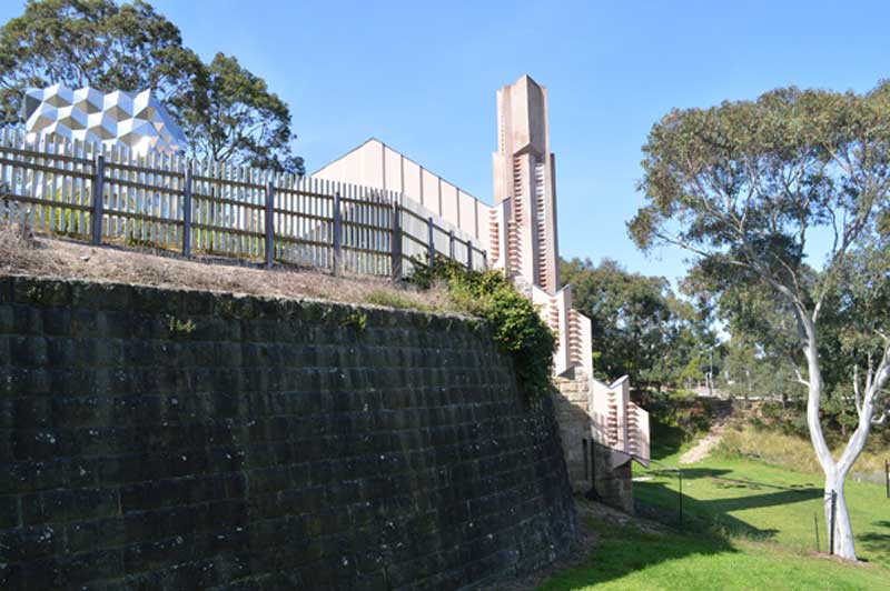 The incinerator was reinterpreted and restored in 2006. There are signs all around the incinerator explaining its operation, and they are well worth reading, as they won an Architecture award for their interpretation of an industrial site. The rows of columns extending from the incinerator to the walkway are an interpretation of Council sheds designed by Griffin as part of his landscaping of the site. The facility has a small room suitable for meetings and small functions. Location: 53 Forsyth Street, Glebe.