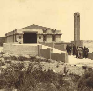 The Willoughby Incinerator was dedicated in September 1934 based upon a design by Griffin and Nicholls. The Burley Griffins loved the solid granite and less-solid sandstone of the Australian bush that is found in abundance around the Castlecrag peninsula where they lived, so it is not surprising to find it was used liberally in the construction of the Willoughby Incinerator. Art Deco was the predominant architectural style of the inter-war era, so it is not surprising to find that the Griffins' incinerators display a variety of distinctive Art Deco embellishments.