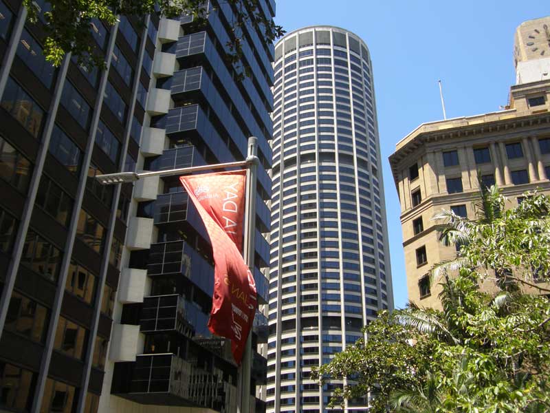 Built as the head office of a leading Australian owned and operated insurance company, the AMP building on Circular Quay broke new ground not only with its height but also in that it did not occupy the whole of its site. Only 55% of the site was occupied by the office building, the rest was to be part of the public space around Circular Quay, achieved by the removal of vehicular traffic from Alfred Street. For a time, this occurred, but the re-introduction of taxis and buses has turned the forecourt of the AMP Building into wasted space as it is separated from the rest of the Circular Quay open space by a busy roadway.