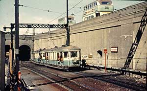 After the bridge was opened, a new suburban railway line between St Leonards and Eastwood was given the green light but funds for the project dried up during the great depression of the 1930s and it was never built. Tunnels cut for the Eastern Suburbs railway at the Museum end of St James station have never seen a train and it is most unlikely that they ever will as the ESR has been built to quite a different plan. It actually crosses underneath St James at right angles just north of the platform. A blast curtained opening leads into the double track tunnel originally intended for the eastern suburbs railway almost immediately on the Museum side of St. James station. Like the spare tunnels at the Circular Quay end, this tunnel is located between the two currently in use for rail traffic. They are on a fairly steep gradient upwards. After a short distance, the double line tunnel becomes two parallel single line tunnels, still rising sharply. In this way, they rise up over the top of the City Outer tunnel, in the direction of Taylor Square. Again, just enough tunnel was built to ensure that rail traffic would not be disrupted when construction resumed. The tunnels end at a barricade under Hyde Park about level with but well to the East of Museum Station. Behind the barricades are rocks piled up where the cut and cover construction work ended. The existence of this tunnel system can easily be noted by watching trains arrive at and leave Museum at the St James end. The reverse curvature of the tunnels in use now to get around the tunnel between them is obvious.