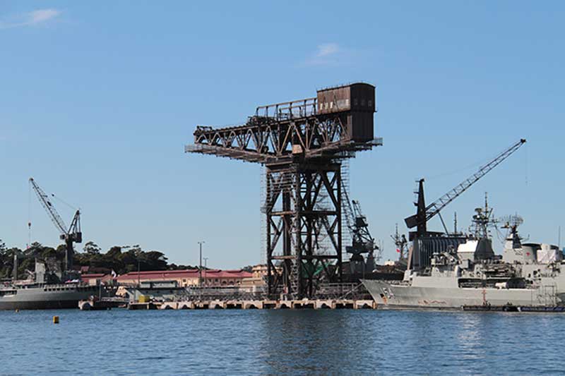 The Sydney Steel Company Pty Ltd was contracted to fabricate and erect the crane to the design of Sir William Arrol, with Sir Alexander Gibb and Partners as consultants. All mechanical and electrical equipment came from England. All structural steelwork was fabricated and erected by the Sydney Steel Company. In August 2013 the Federal Government announced the removal of the hammerhead crane, that has been a landmark of Garden Island Naval Base for 60 years, at an estimated cost of $10.3 million. Before its deconstruction, it was one of only 15 still standing around the world, and one of a series of cranes built around the world to service the British Navy fleet. The crane has not been used since 1996.