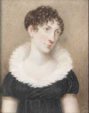 Elizabeth Henrietta Macquarie (1778-1835), was the youngest daughter of John Campbell of Airds, Scotland, and a relative of the earl of Breadalbane. Her sister married Maclaine of Lochbuy, a relation of the Macquaries. At 26 she met her distant cousin Colonel Lachlan Macquarie at the deathbed of Lochbuy. He was immediately attracted to his young kinswoman, who showed herself so helpful in trouble and had impeccable taste in gardens. The acquaintance ripened when he drove Elizabeth and Lochbuy's two sons to Edinburgh. She would make, he wrote in his diary, an admirable soldier's wife. Macquarie proposed to Elizabeth at her aunt's house in London in March 1805, making it clear to her that they could not marry until after his next tour of duty in India, probably in four years time, as he had made a solemn vow on the death of his first wife never to marry again in India or to take a wife to that country.