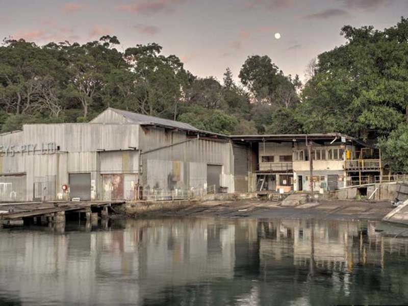 A residential development on the foreshore of Oyster Cove on Balls Head Bay (above) contains the remnants of the largest coal gas manufacturing works on the North Shore and one of the largest in Australia. The remaining structures on site are the Boiler House, the Exhauster House, the Carburetted Water Gas Plant and the Chimney. These have been included in the recent landscaping of a recreation area for the Wondakiah residential development now occupying the site. Wharfage remains largely in place.
