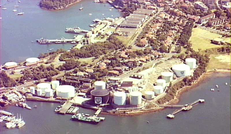 The Anglo Persian Oil Company's occupation of what became known as the BP site dates from 1908 but it wasn't until 1923 that their first tank was installed. The tanks grew in number to 31 by the late 1960s and were a prominent feature of this part of the Harbour. The substantial stone store erected by Berry and Wollstonecraft was demolished to open the way for additional fuel storage tanks in the mid 1930s. The bund wall left standing contains the stones of the storehouse and is listed by the North Sydney Council as having high heritage significance. In the early 1950s additional tanks for storage were added in Unnecessary Road (a planned extension of Rose Street which is today Larkin Street) and adjacent properties purchased to provide accommodation for the staff.