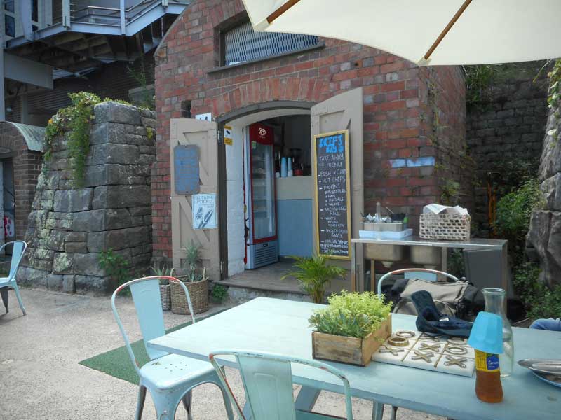 A great policy of the Harbour Trust has been to retain as many original existing buildings as possible on the sites around Sydney Harbour that it has converted from miltary to public recreational use. One such building at Chowder Bay is a brick ammunitions store which was erected right on the beach at the foot of the Depot. During the refurbishment of the base, someone had the bright idea of turning it into a kiosk to serve coffee and take-away food to visitors to the complex and neighbouring Chowder Bay beach and reserve - voila Drift Bay Kiosk!