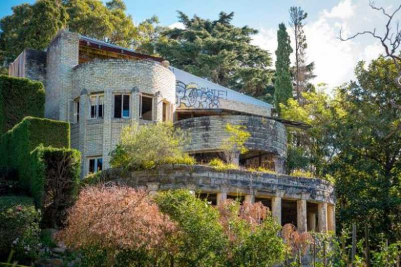 The harbourfront art deco manor Morella was one of the finest homes to grace the suburb of Clifton Gardens until it was abandoned three decades ago. Morella was built in 1939 for the prominent Parer family of Spanish-Catalan descent. Morella's detailed brick work bearing its name, curved walls and circular loggia with short pillars remain hallmarks to the home's former grandeur. It featured prominently in a 1943 issue of Australian Home Beautiful magazine as a result of its striking design. Excavation has been made for the building of a ballroom across the entire front of the house but this was never built.