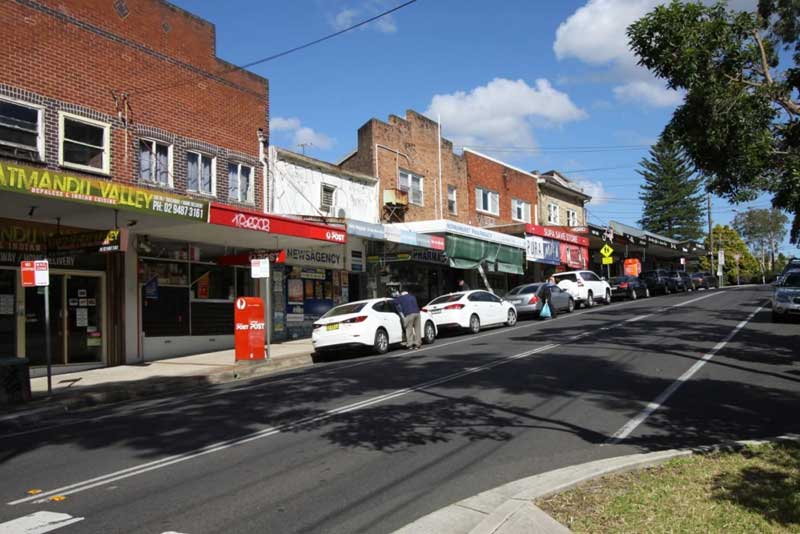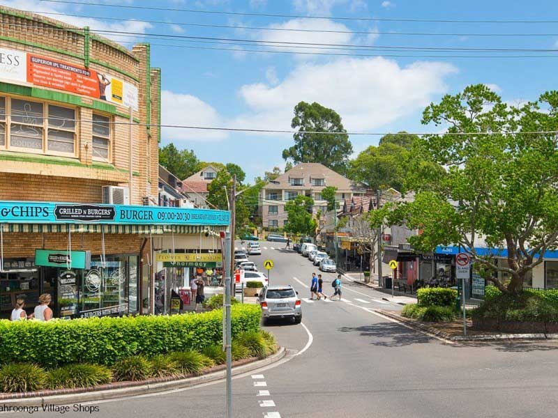Hornsby's southern neighbour, Wahroonga, is 22 kilometres north-west of the Sydney central business district. Wahroonga is an Aboriginal word meaning our home. Wahroonga has several small shopping villages, such as Wahroonga Village located near the railway station, which is on the North Shore, Northern and Western Line of the Sydney Trains network. Wahroonga is the Sydney end of the M1 Motorway to Newcastle. Pennant Hills Road s northern end begins in Wahroonga and intersects the M1 At Pearce s Corner. The Comenarra Parkway is a minor arterial road that stretches from Thornleigh to West Pymble via Wahroonga and South Turramurra.