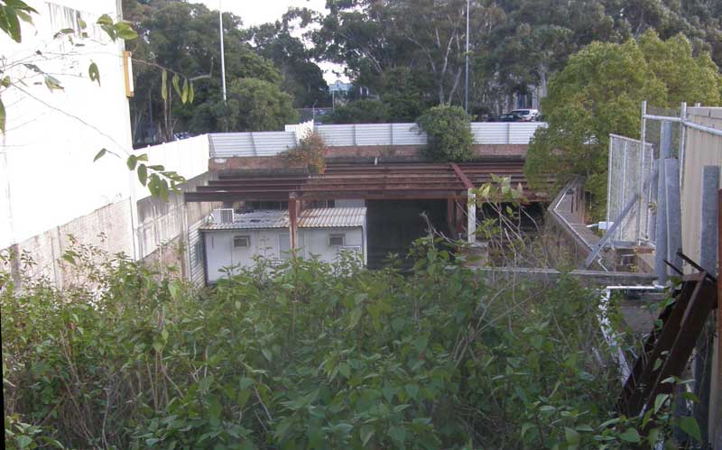 A now filled-in dive tunnel under the Wells Street Sectioning Hut on the Central side of Lawson Street was to have carried the up track. The area in which the platforms were to be situated is also visible from the station concourse at the entrance to Platform 10. Construction work continued on and off until 1952 when funds ran out and the project was shelved. At that time, the stations were excavated by open cut methods and the steel frame structures of the ground level stations were erected. When work ceased in 1952, the steel was left exposed; by 1967 when work was set to re-commence, these steel structures had corroded badly. Major remedial work was required but these platforms were never completed.