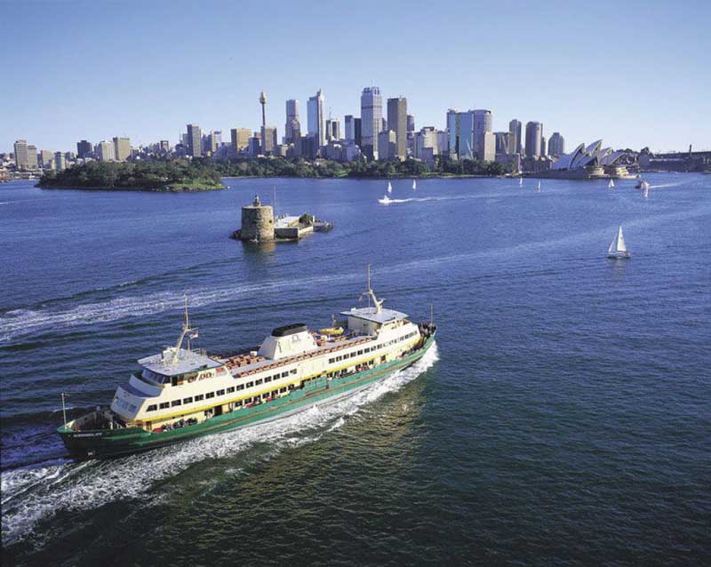 Very few cities in the world can boast an institution as unique as the Manly ferry, a service which takes passengers on a 30 minute ride up one of the most beautiful harbours in the world, past historic sites, a naval dockyard and hundreds of beautiful homes, then gives a taste of the open sea before berthing at one of the world's most delightful seaside suburbs. The journey back is even better, the sight of the Sydney skyline rolling into view as the ferry rounds Bradleys Head and heads for home, particularly at sunset, is quite spectacular.