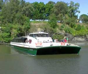 Parramatta River by ferry: an enjoyable way to experience the many interesting features to be found along the river between the cities of Sydney and Parramatta is a ride on the RiverCat ferry. Ferries leave regularly throughout the day from Circular Quay, which is Sydney's major transport hub. Over 30 services operate in each direction every day of the week from Circular Quay's Wharf No.5. The ferry stops at numerous sububan wharves, including Birchgrove, Cockaoo Island, Meadowbank and Olympic Park, Homebush. The journey, which takes one hour, is an integral part of a half day or full day trip to Parramatta. You can either return to Sydney by ferry or take the train through Sydney's inner western suburbs.
