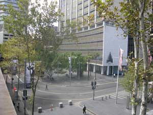 A decade after AMP Insurance group moved into its shiny new building on Sydney Cove, the company had out-grown the premises and needed more office space in close proximity to their harbourside building. Their solution was to purchase the land on the rise immediately behind the building and erect a new head office. For many years a tramway depot stood on this site. A steam train service inaugurated for the opening of the Garden Palace International Exhibition in 1879 was only meant to be temporary, for the duration of the Exhibition. It was such a success and so popular that it was kept on. The steam motors and double decker passenger cars came from the United States.The new office tower was completed in 1976 and for a period of just over a year, was the city's tallest building. Standing 188 metres tall, what is still the head office building of the AMP Society insurance group shows obvious influences of Eero Saarinens CBS building in New York, a feature it shares with similar AMP office towers in other states. 50 Bridge Street, Sydney. Height: 188 metres.