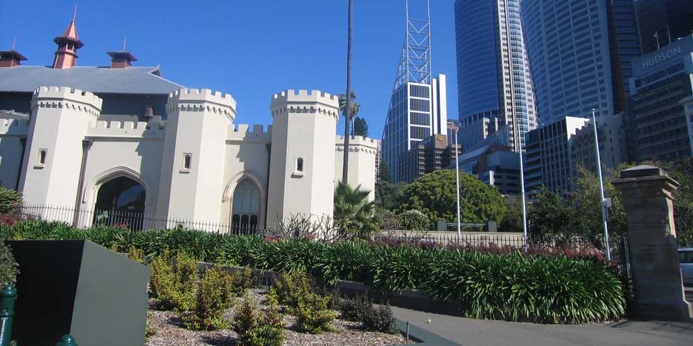 For the majority of colonial era buildings on the eastern side of Macquarie Street, the stone used in their construction was quarried on site. Macquarie Street runs along the top of a ridge, therefore it was convenient to use the vast amount of sandstone on the hillside going down to Farm Cove and Woolloomooloo Bay for the construction of the Conservatorium of Music, The Rum Hospital, Hyde Park Barracks and St James Church. There is little evidence of the quarry today as it has been levelled and grassed over to form the Royal Botanical Gardens and The Domain. Buildings such as Government House were built in part from sandstone quarried on site or quarries nearby that have been included here as they are in the general vicinity of The Domain.