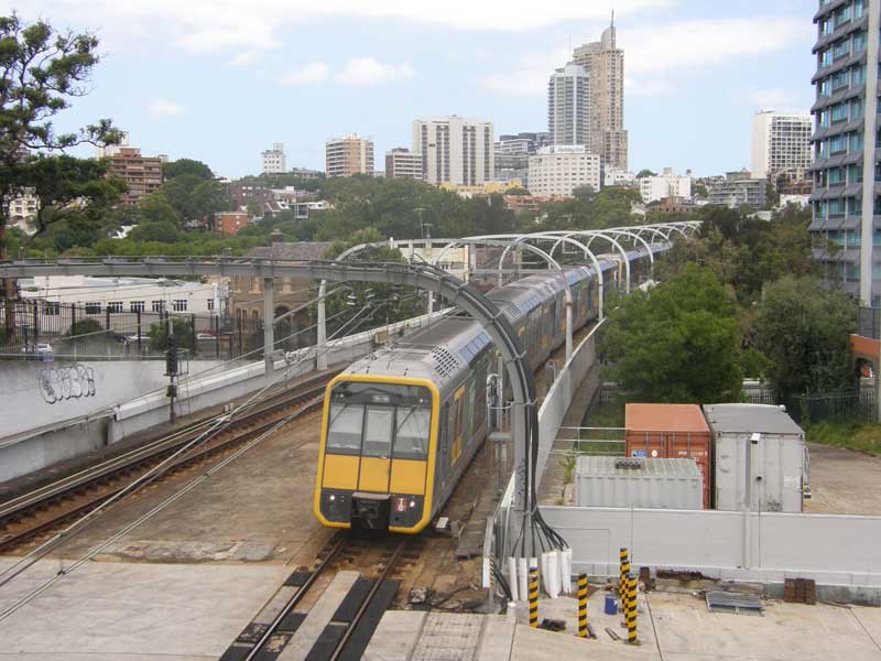 The Eastern Suburbs Line railway exits the tunnel on the eastern side of the Domain and proceeds across Woolloomooloo as a viaduct In more recent years, major transport projects have affected the Domain. The most significant of these was the building of the Cahill Expressway in 1952. As part of this project to build an eastern tributary to the Sydney Harbour Bridge, the small roads to the north and east of the Domain were widened into expressways. After the completion of the project, traffic moving south from the Bridge could pass through a tunnel built into the western part of the Royal Botanic Tunnels, after which it became a sunken road built into the northern edge of the Domain. The road crosses the eastern part of the Domain in a tunnel, exiting through the slope on the east side of the Domain, after which it continues south along the eastern edge of the Domain as the Eastern Distributor. The Cahill Expressway emphatically separated the Domain from the Royal Botanic Gardens, and destroyed the close spatial relationship between the Gardens and the Domain.