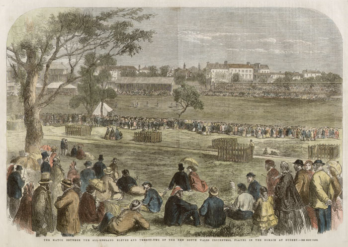 Cricket matches, which had been played in Hyde Park since the early 19th century, moved to the Domain in the 1850s. New South Wales had beaten Victoria by three wickets in their first inter-colonial match held in Melbourne in 1856. The return match was played in the Domain on from 14 16 January 1857 and New South Wales won again, this time by 65 runs.