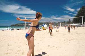 17 kilometres north-east of the Sydney central business district on a narrow neck of land separating the Pacific Ocean from port Jackson s North Harbour, Manly s position has set its destiny as a premier oceanside/harbourside playground for Sydney. For many years Manly was a seaside resort that was seen as being somewhat distanced from the hustle and bustle of Sydney. These days it is very much a part of the Sydney beach scene, greatly commercialised but somehow hasn't lost its feel as a resort and popular playground for holidaymakers and daytrippers alike.