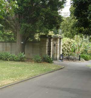 A remnant of the convict built Macquarie Wall begins just past the Gardens Shop in Sydney Royal Botanical Gardens, after you cross the creek on the oldest culvert in Australia. The Gardens' foundation day is traditionally 13th June 1816 when Elizabeth Macquarie's road to her 'Chair', the carved rock ledge at the Point, was completed. The new Road ran along the new Wall. If you walk along the harbour side of the Wall you will be treading the route of the original Mrs Macquaries Road.