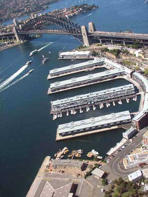 The wharves were at their busiest between the wars but fell into gradual decline after World War II, eventually ceasing to function as part of Sydney harbour's docking facilities in 1977 by which time the advent of containerisation had sealed their fate. The whole wharf area has recently undergone major redevelopment.