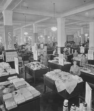 In 1856 a new three-storey Haymarket store was opened and Anthony jun. took his elder son Anthony III into partnership as Anthony Hordern and Son. On 10th July 1901 the Haymarket premises was destroyed by fire. Business was resumed almost immediately in the Exhibition Building, Prince Alfred Park, and a new building - The Palace Emporium or Senior Store - erected on the site of their original Brickfield Hill store in 1905. A further storey was added a few years later. The Palace Emporium's main entrance was completely fitted out in imported Italian marble. One of its advertising slogans was that it sold "anything from a needle to an anchor". The crest on their coat of arms was a budding tree, the motto: "While I live I'll grow". It appeared above all the store's window fittings and on all its stationery.