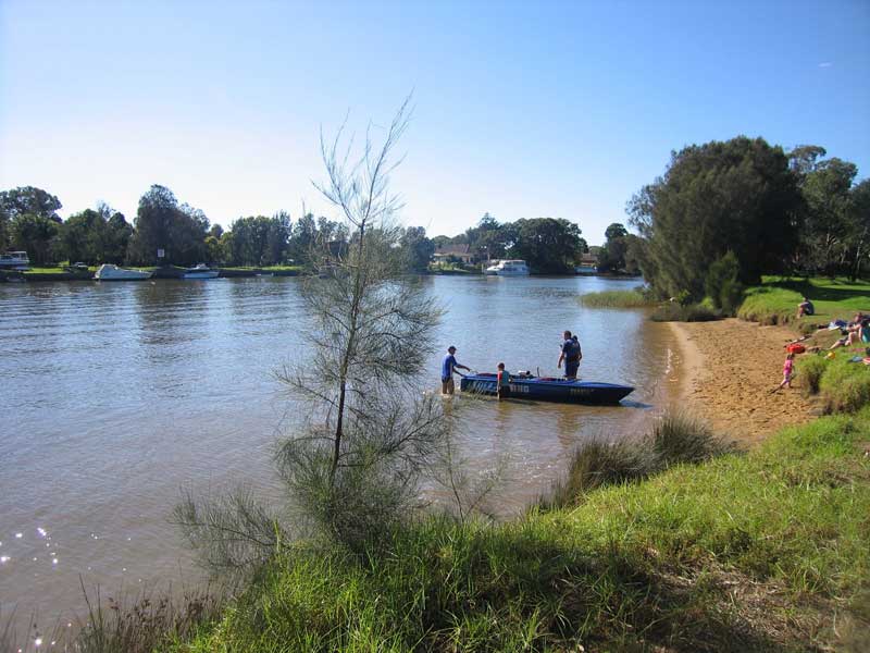 Kelso Beach: Kelso Beach is a little further upstream from Alan Ashton Reserve on the other side of the railway bridge, also on Henry Lawson Drive. This pleasant beach, on a bend in the river, is very popular among the locals. The sand is clean and there are picnic facilities. Henry Lawson Drive, Henry Lawson Drive, East Hills. UBD Map 290 Ref M 2.