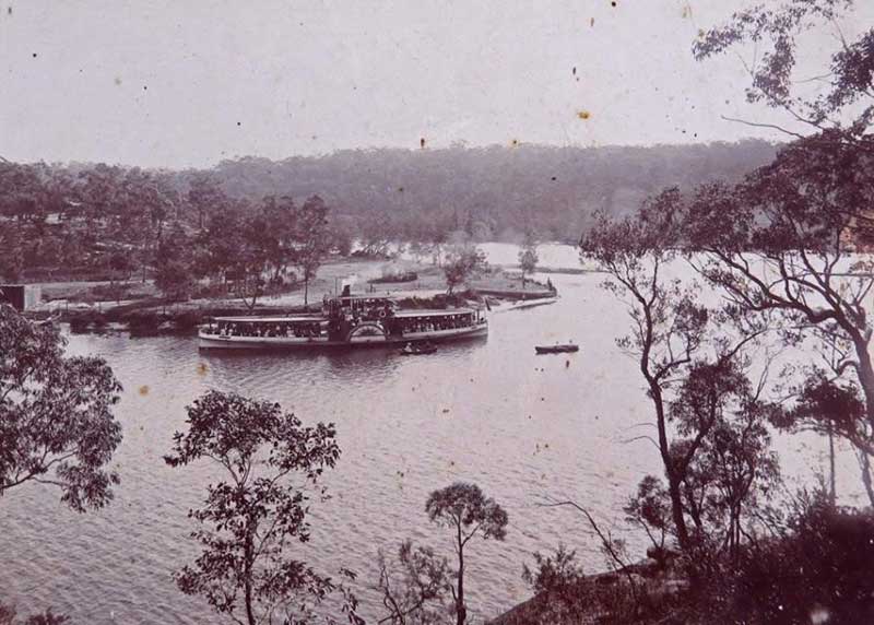 Following the opening of the railway crossing the Georges River downstream at Oatley in 1886, the three enterprising Sanbrook brothers began the operation of Paddle Wheel ferries on the Georges River from Wills boatshed adjacent to the southern end of Como Railway Bridge. Their ferries travelled up the river to a pleasure reserve called Parkesvale near Sandy Point, opposite East Hills, stopping at Lugarno Park in both directions. Both Parkesvale and Lugarno Park became popular excursion destinations, excursion tickets were advertised in Sydney papers with combined train-ferry tickets to Parkesvale from Sydney for 1/6d second class and 2/6d first class. Parkesvale offered a number of summer houses for picknickers, a public refreshment room, pavilion (with piano), cricket pitches, children's playground equipment along with fishing, swimming and boating activities in the river. The location of the Parkesville pleasure grounds is recalled in Pleasure Point Reserve and the locality of Pleasure Point.