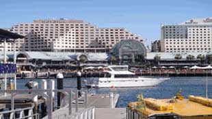 A large recreational and pedestrian precinct on the western outskirts of the Sydney central business district. The area contains a mix of shops, restaurants and attractions that includes the Sydney Aquarium and Sydney Wildlife World; max Theatre; Sydney's Chinese Gardens.