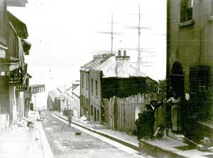 Built in the 1830s, Clyde Street ran down the hill from Millers Street, another street that no longer exists. Millers Street ran from Argyle Place near the corner of Windmill Street, to Kent Street, meeting it opposite No. 30. The top of Clyde Street, where it met Millers Street, was at a point on today s High Lane just above where Argyle Lane does a 90 degree turn. Clyde Street ran south-west down to the shores of Darling Harbour. All traces of both streets have been obliterated. The earliest enduring ship building yard in the area was established by James Munn located at the foot of Wentworth (now Munn Street) and Clyde Streets in the mid to late 1820s. On Clyde Street, leading down to the docks, the whitewashed front steps were a sign of respectability in the 1850s. Four decades later, still predominantly residential, Clyde Street had become part of a densely populated neighbourhood of Sydney, in which even dilapidated houses were in great demand due to their proximity to the Darling Harbour wharves and goods yards. That all began to change in 1900, with the outbreak of bubonic plague in The Rocks and Millers Point. The streets of Millers Point were selected for cleansing operations in 1901.