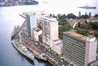 Built as the head office of a leading Australian owned and operated insurance company, the AMP building on Circular Quay broke new ground not only with its height but also in that it did not occupy the whole of its site. Only 55% of the site was occupied by the office building, the rest was to be part of the public space around Circular Quay, achieved by the removal of vehicular traffic from Alfred Street. For a time, this occurred, but the re-introduction of taxis and buses has turned the forecourt of the AMP Building into wasted space as it is separated from the rest of the Circular Quay open space by a busy roadway.