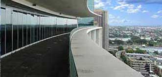 The AMP's Sydney Cove building, on the corner of Young and Alfred Streets, Circular Quay, was completed in 1962 and is a landmark in Australian architecture. At 115 metres, it was the first building to break Sydney s height limit of 45.7 metres and was at the time Australia s tallest building. Recognised as Sydney s first skyscraper, it features the sweeping curves of its curtain wall facade, following the new curtain wall-shaped office tower designs of New York architect Gordon Bunshaft. It broke new ground not only in its shape but also in being one of the first office buildings in Australia to feature floor to ceiling windows. The reflection from Circular Quay on the windows caused major air conditioning problems.As the building stood head and shoulders above everything else around it, a viewing platform (106 metres) was incorporated into the top floor on the Circular Quay side. People flocked to it in their thousands, and it became one of the city s top attractions.