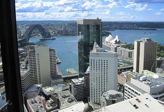 On its completion, Australia Square became the tallest building in Australia, and remained so until 1976. When Sydney Tower opened its lookout (250 metres) in 1981, the Australia Square lookout suffered a similar fate to AMP's, and was eventually closed. The Summit Revolving Restaurant still operates. Sydney Tower is higher than any other structure in Sydney, therefore its view has not been built out by taller buildings, as was the case with Australia Square. Needless to say, many people who have visited both the Australia Square lookout and Sydney Tower lookout prefer the former, as it was closer to the harbour and gave a better view of Sydney's two most iconic landmarks - the Sydney Harbour Bridge and the Sydney Opera House.