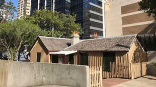Former boatman's cottage from the 1820s, now houses an information office of the National Parks & Wildlife Service. Social history. It is the oldest dwelling in the Sydney Central Business District. 110 George Street, Circular Quay.