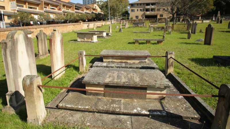 Australia's oldest surviving cemetery and the most intact Georgian cemetery in NSW. In use between 1789 and 1824, it contains the oldest known undisturbed grave in Australia, marked by a slab of river sandstone which bears the inscription: H.E. Dodd 1791. Henry Edward Dodd was Gov. Phillip's butler. He was buried there on 29th January 1791, a year after the opening of the cemetery. The gravestones of a number of other first fleeters are to be found in the cemetery including NSW's first Surveyor-General, German born Baron Augustus Alt; John Palmer (Purser of HMS Sirius); William Ellett; Jane McManus; Frances Hannah Clements; highwayman and First Fleet convict James Wright, his wife Letitia. Also buried here are pioneer churchman Rev. Samuel Marsden (Marsden Park is named after him); merchant Robert Campbell after whom Sydney's Campbells Cove is named; bridge builder David Lennox (no headstone remains); explorer and schoolmaster of the Government school; the founder of Melbourne, William Batman.