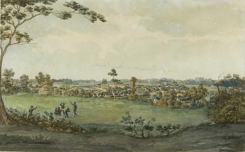 Parramatta holds the distinction of being the only place in Australia to be laid out by First Fleeters. Planned on a grand scale by Baron Augustus Alt and Lieutenant William Dawes on instructions from the Governor early in 1789, its main street (High Street, later George Street) was to be 1.5 kilometres long and 62 metres wide, on an east-west axis from Government House to the public wharf. A second street parallel to the High Street and 33 metres wide was also laid out, called South Street (now Macquarie Street). Wide cross streets at right angles to the main axis were laid out in front of Government House; one by the church, ending at the north end in an open plaza big enough for a Town Hall as its focus (now O Connell Street); another further to the east, which was the crossing point over the river (now Marsden Street).