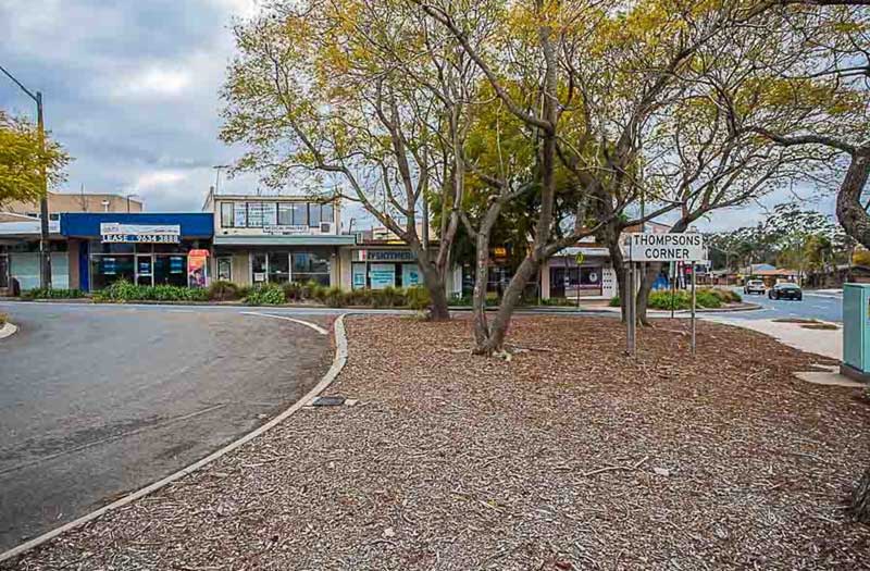 Thompsons Corner is named after Andrew Thompson (1773-1810), a convict who received a grant of 100 acres (0.40 km2) in 1796 opposite the signal station in Pennant Hills. Workmen on the railway from Strathfield to Hornsby established a camp and stores depot there in about 1890. During Lachlan Macquarie's governorship (1810 21), a timbersawing establishment stood near today's Thompsons Corner.