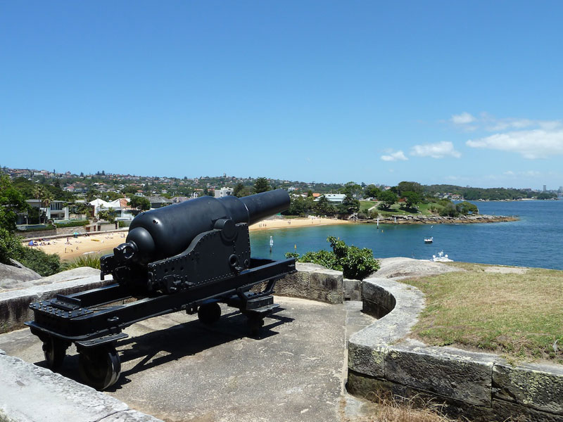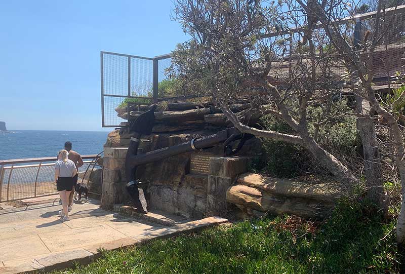 At the far end of Camp Cove is Laings Point, also known as Green Point. Its name recalls Edward Laing, the first landowner in the area who was granted 20 acres in the Watsons Bay area in 1793. The western tip of the point is home to many relics, reminding visitors that this area played a significant role in the 1480m anti-submarine net that spanned the harbour entrance, built in 1942. The other end of the net was attached to Georges Head. Midway through construction, in May 1942, three Japanese midget submarines entered and attacked vessels in the harbour, slipping through the unfinished net. There are still some preserved parts of the net’s construction at the Point, including the winch house foundations, the anti-motor torpedo boat defensive battery entrance and another battery. There is also a information sign with more details about the history of the area.